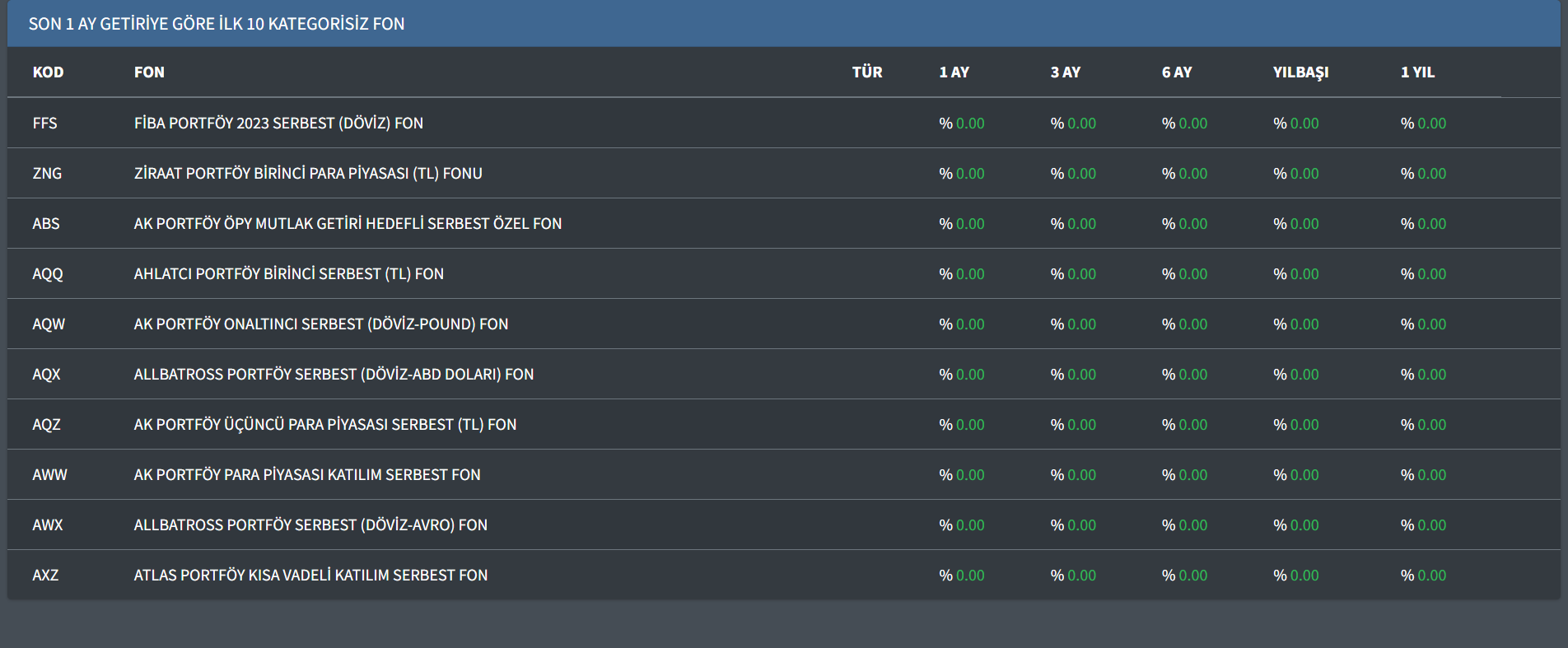 SON 1 AY GETİRİYE GÖRE İLK 10 TÜM FONLAR