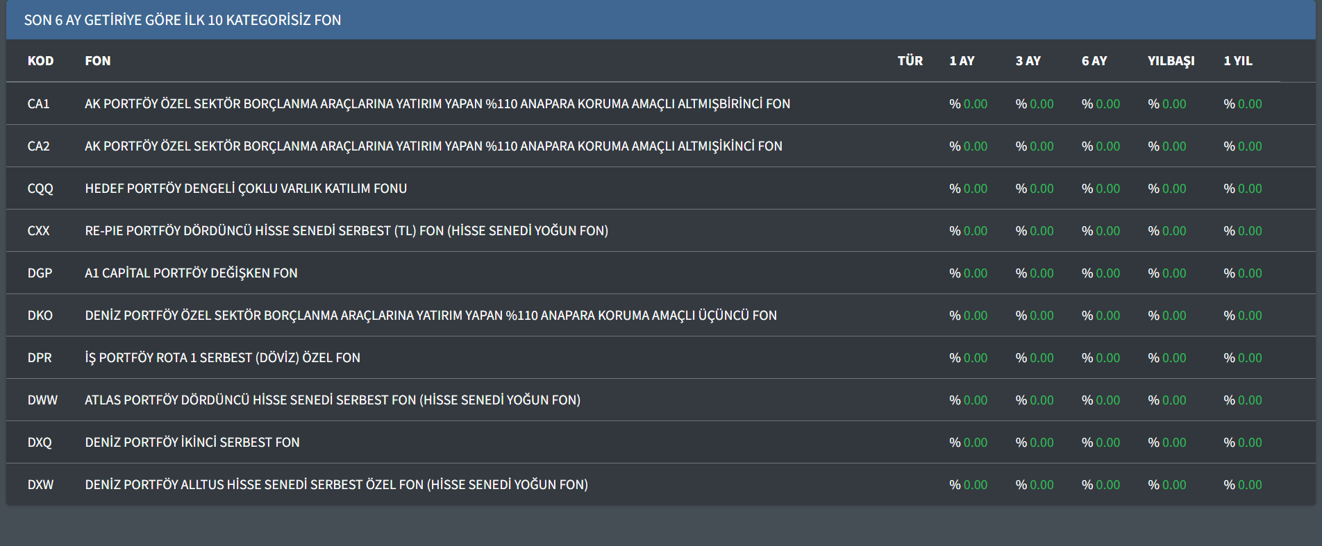 SON 6 AY GETİRİYE GÖRE İLK 10 TÜM FONLAR